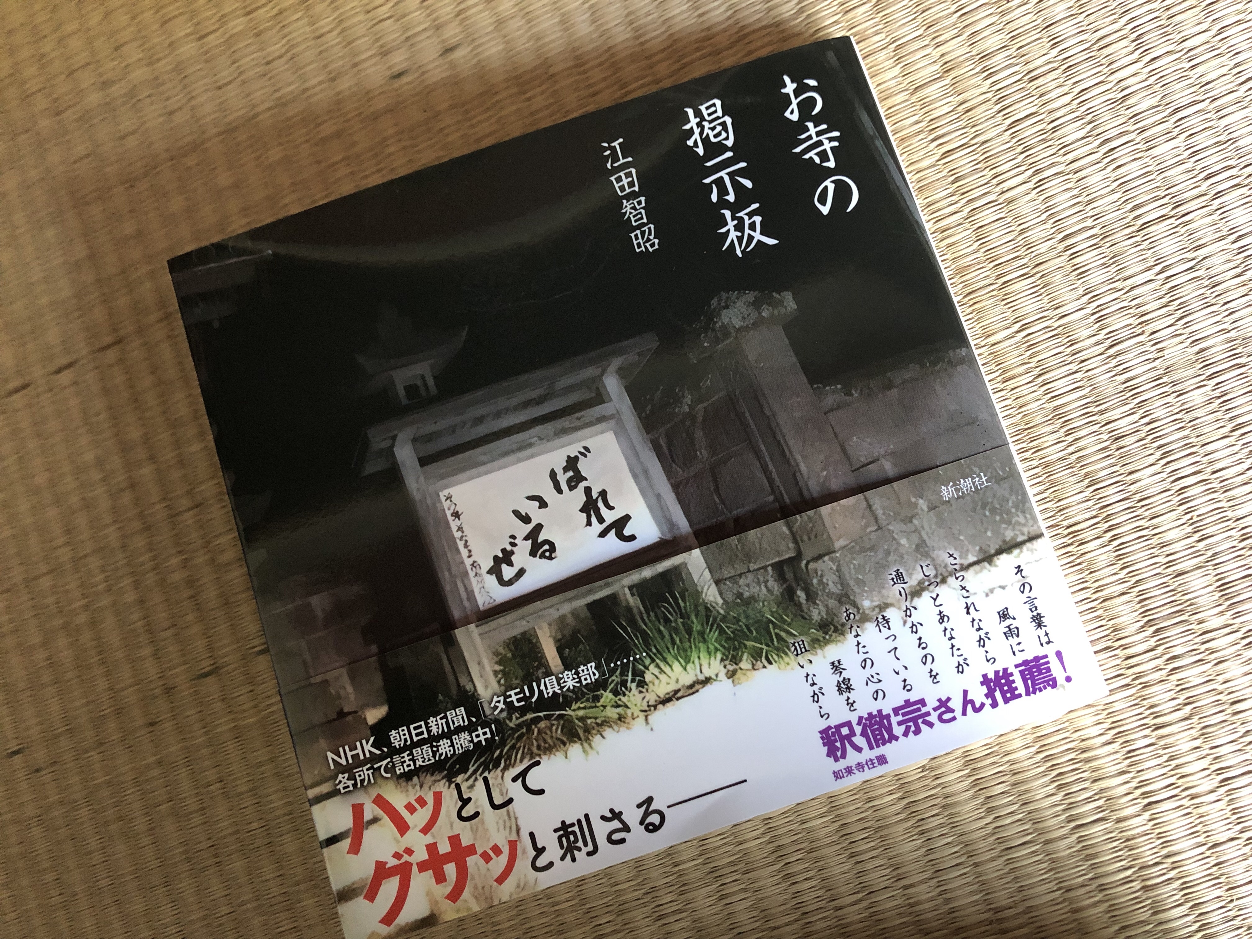 お寺の前に置かれた掲示板。目にするのは前を通る人に限られますが、インターネット上で交流され、昨年は「輝け!お寺の掲示板大賞2018」が開催されました。そこに投稿された作品を集めた一冊がこのほど発売され、購入しました。