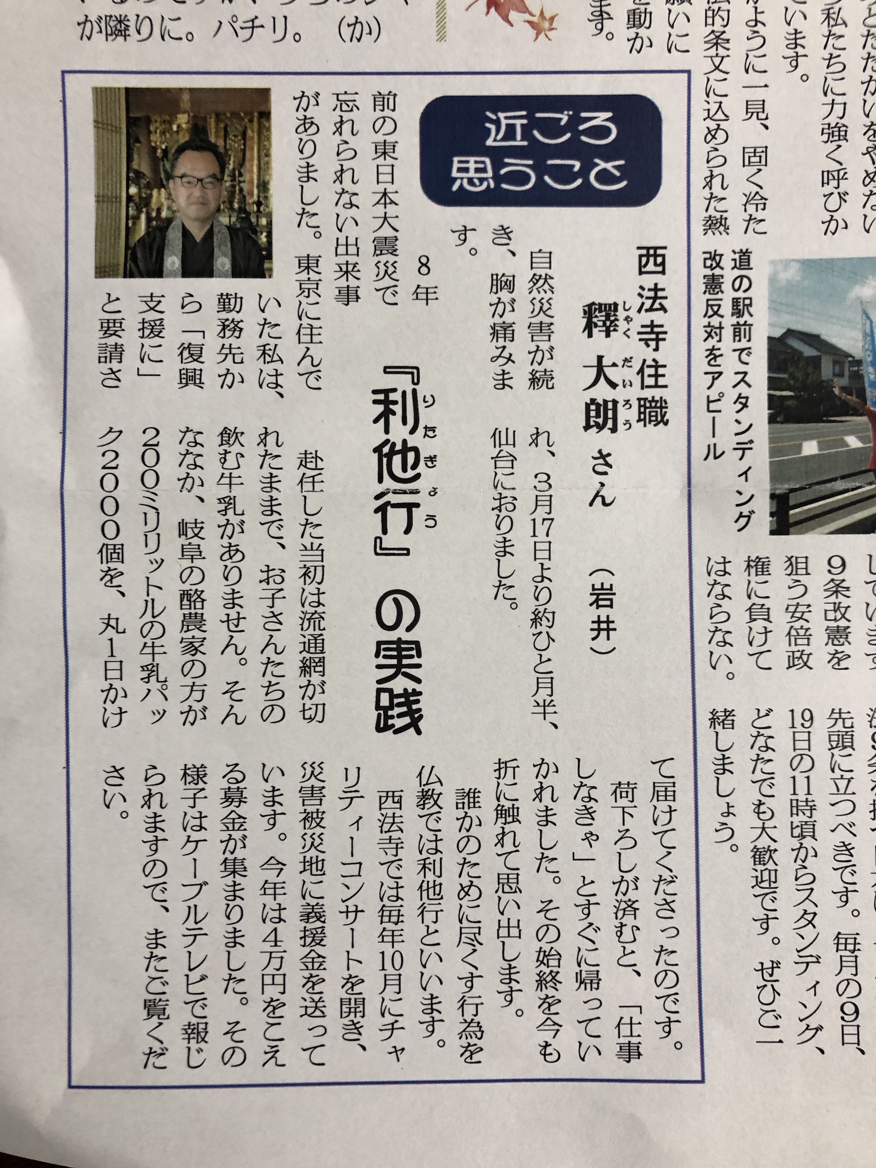 岩美町で長年町議をされている方から、後援会ニュースに出てほしいと頼まれて、短かい文章を載せていただきました。
