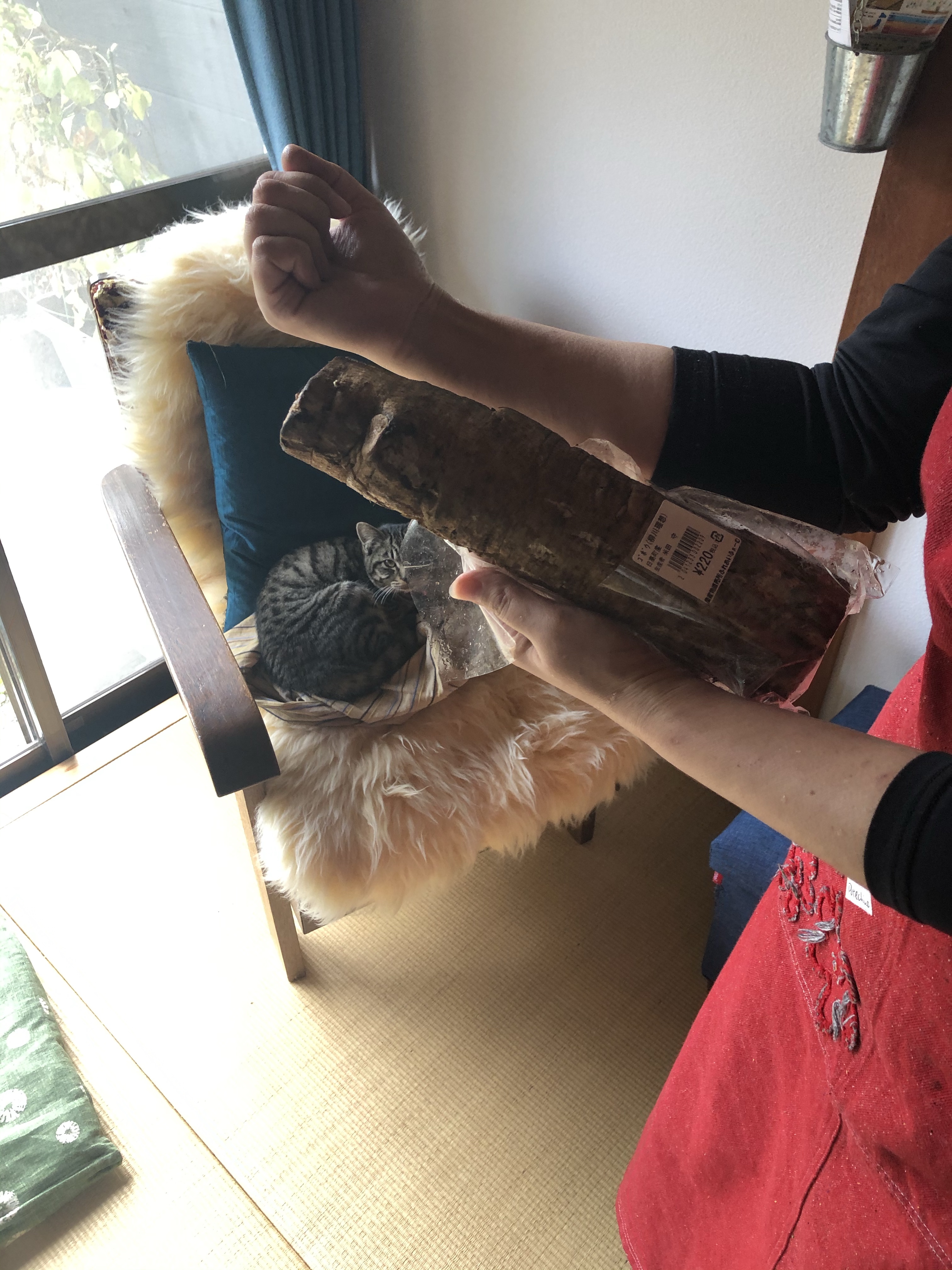 煮物用に探していたゴボウは、イメージ通りの品がなかったのですが、たいへんなモノを手に入れました。わたしの腕より太いのです。煮れば柔らかくなるそうなので、半信半疑でしたが、これから、筑前煮に仕立てていきたいと思います。