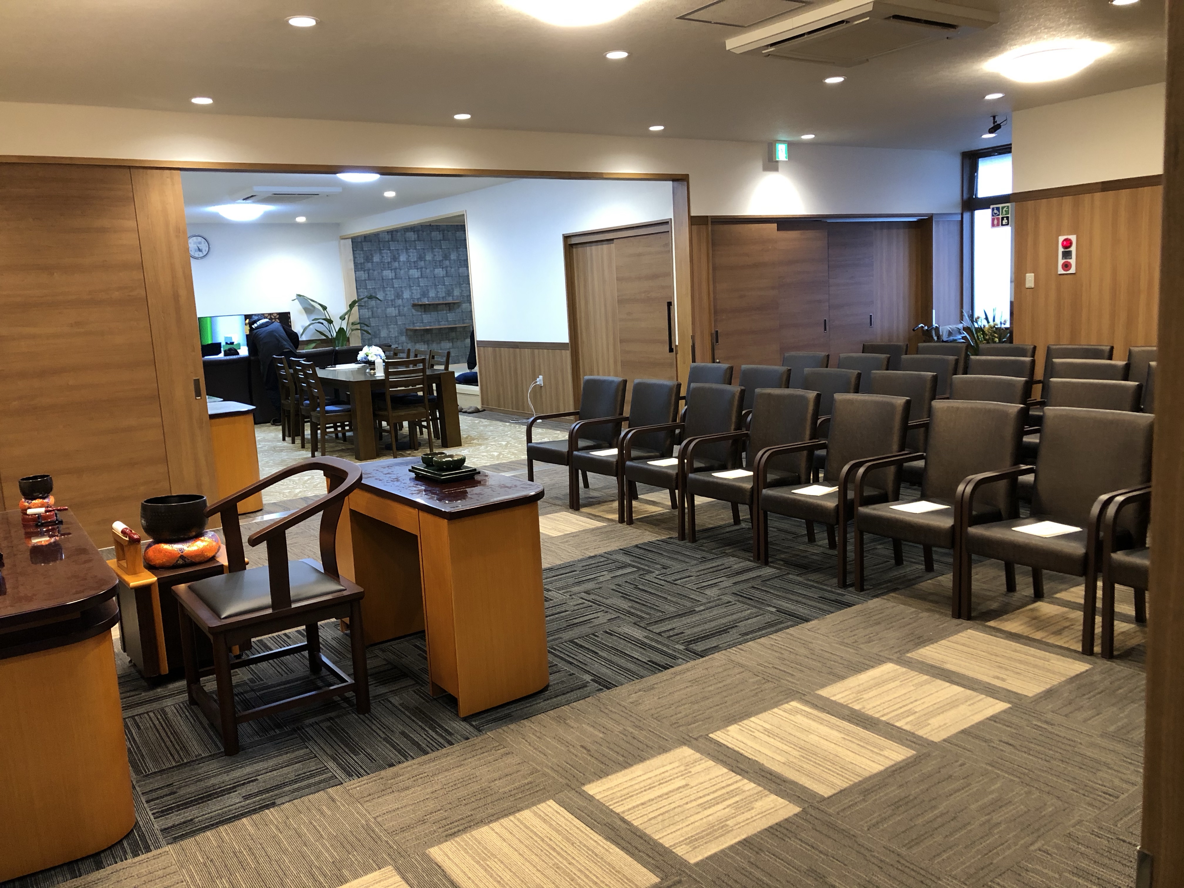 先日、葬儀を勤めました。会場は鳥取市内にある家族想こやまです。はじめてうかがいました。家族葬のための小さな会館で、ご家族が宿泊することもできます。会館の方は「家で通夜・葬儀をするようなかたちになっています」と説明してくださいました。約40人はお参りできるようになっているようでした。