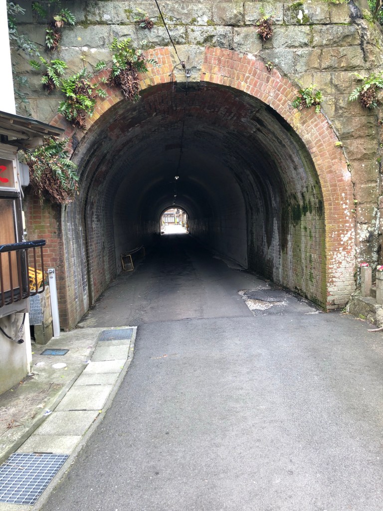写真は網代隧道。造られたのは大正元年。網代に通じる唯一の道でした。いまは海岸に道路があり、ここを車が往来することは少ないです。歩いているとちょっとヒンヤリします。