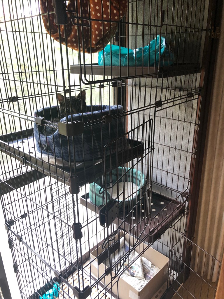 案の定、ナモがやってきたのですが、最初は部屋の前で固まっていました。が、しばらくするとパソコンのキーボードの上に乗ってきたりして組長さんを手荒く歓迎するので、ゲージにお引き取り願いました。