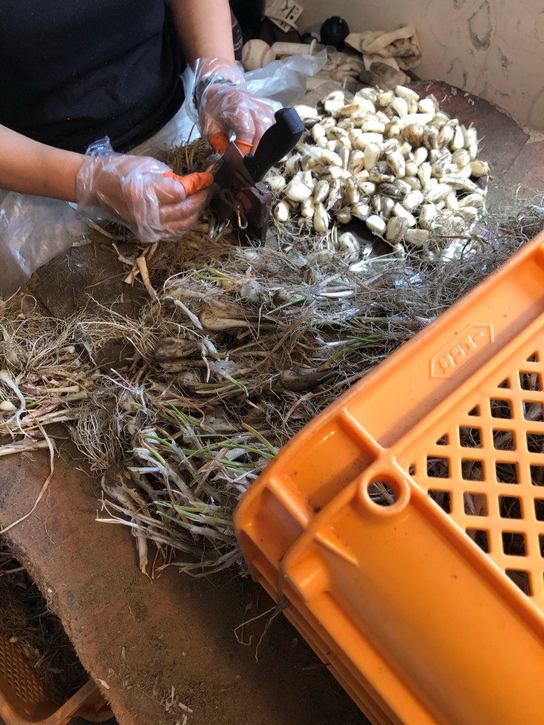 らっきょうを切りながら、「コロナウイルスのことがあって、もっと役に立つことをしたいと思うようになったんです」と胸の内を話されました。