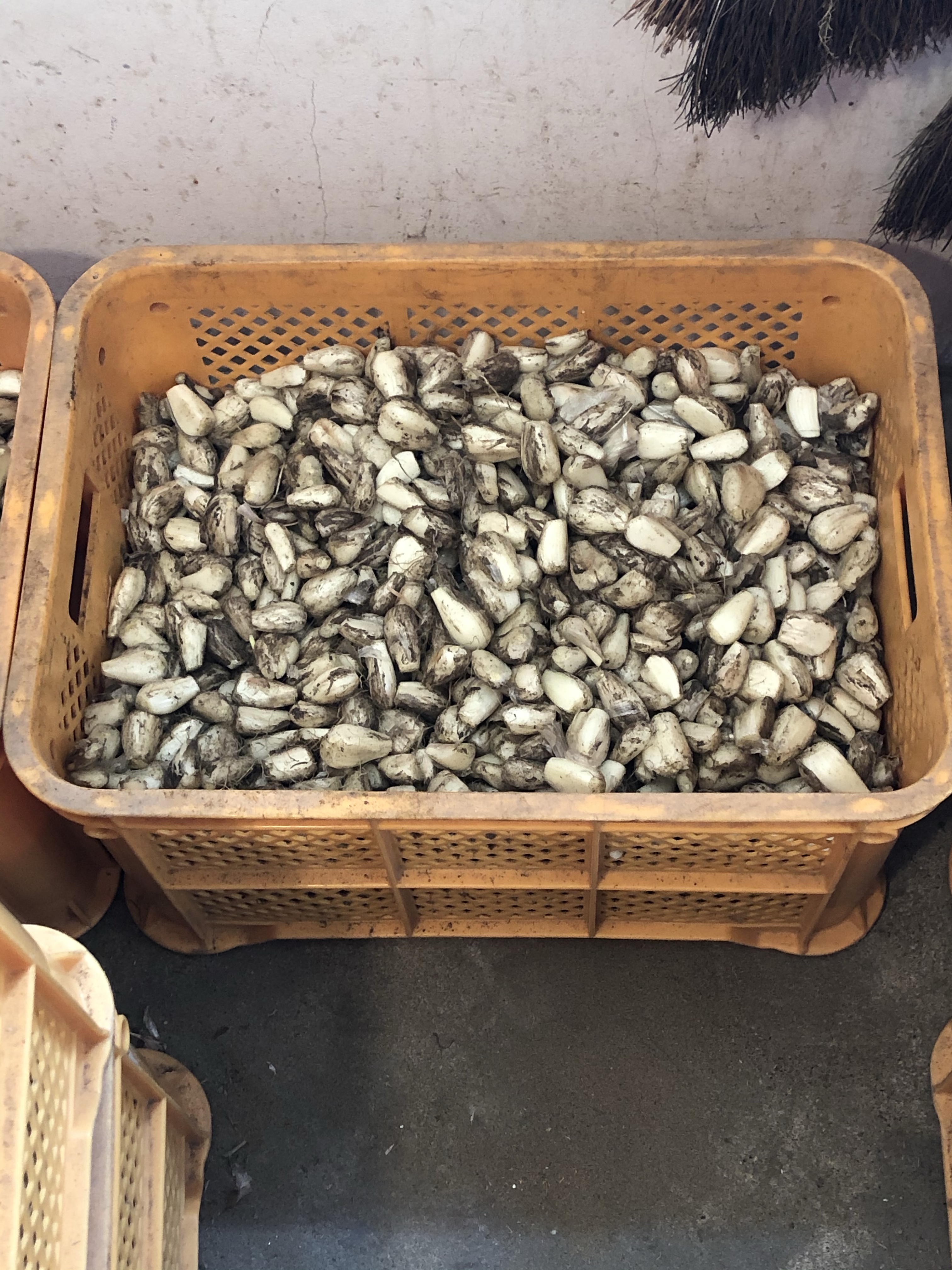 鳥取砂丘の名産品といえばらっきょうです。岩美町の西隣旧福部村(現鳥取市)は一大生産地。岩美町内でもらっきょうを切る方たちの姿を見かけるようになりました。