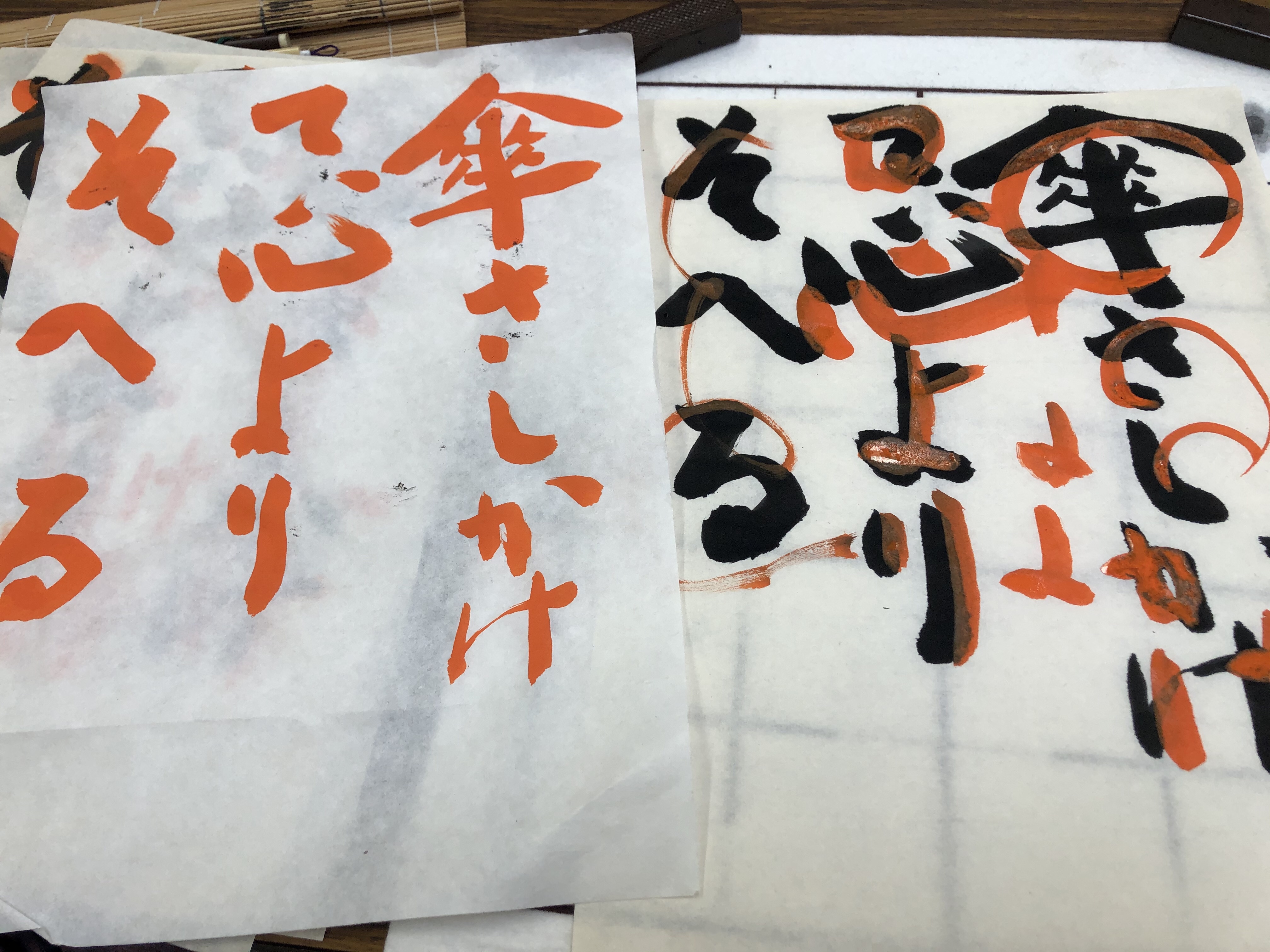 書いた作品は、第13回全国公募書道展に出品されます。先生によると、「出品すればみんな入選ですから」とのこと。これは冗談だと思いますが、面白そうなので、出品したいと思います。