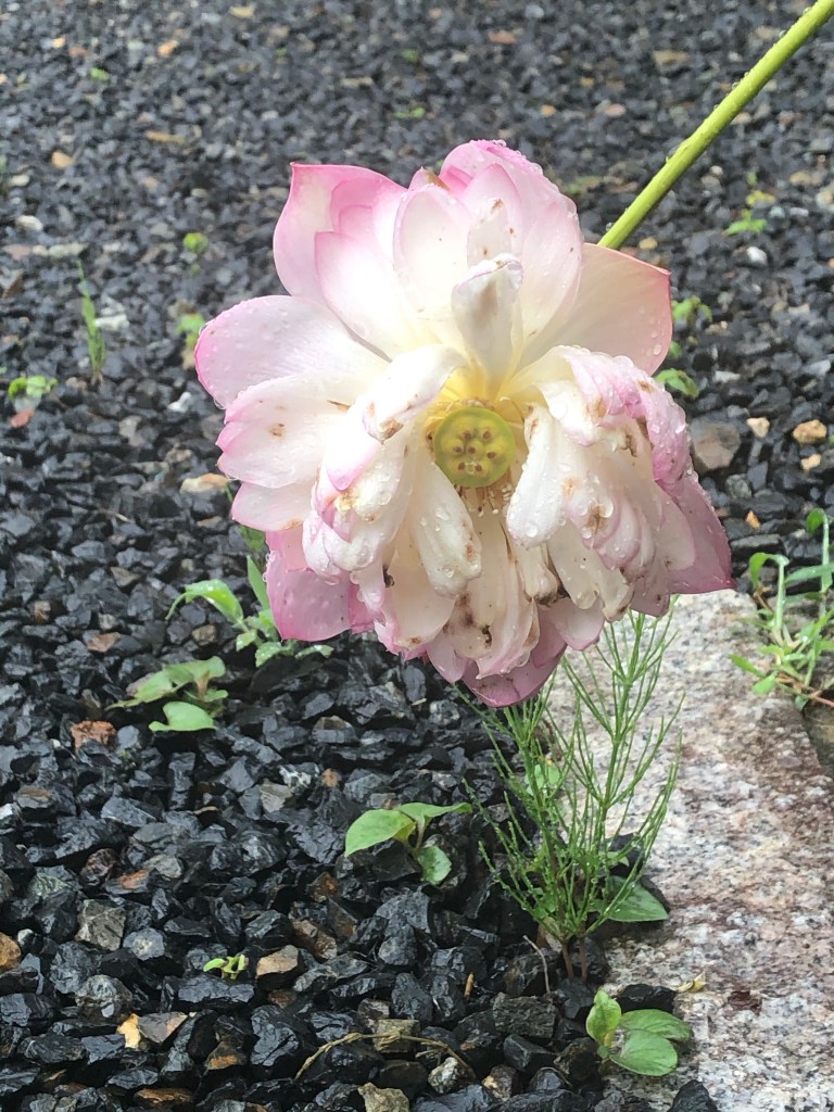 配り物のついでに網代道場の草を狩ったり、抜いたり。1時間ほどでしたが、少しはきれいになったような。予報通りの本格的な雨降りで作業はやめにしました。