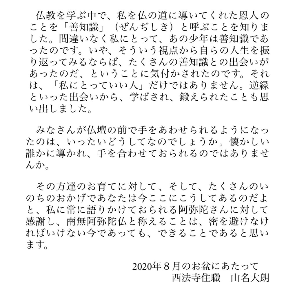 浄土真宗では盂蘭盆経は読みません。というのも阿弥陀仏は私たちを餓鬼道に落とさないために働き続けているからです。