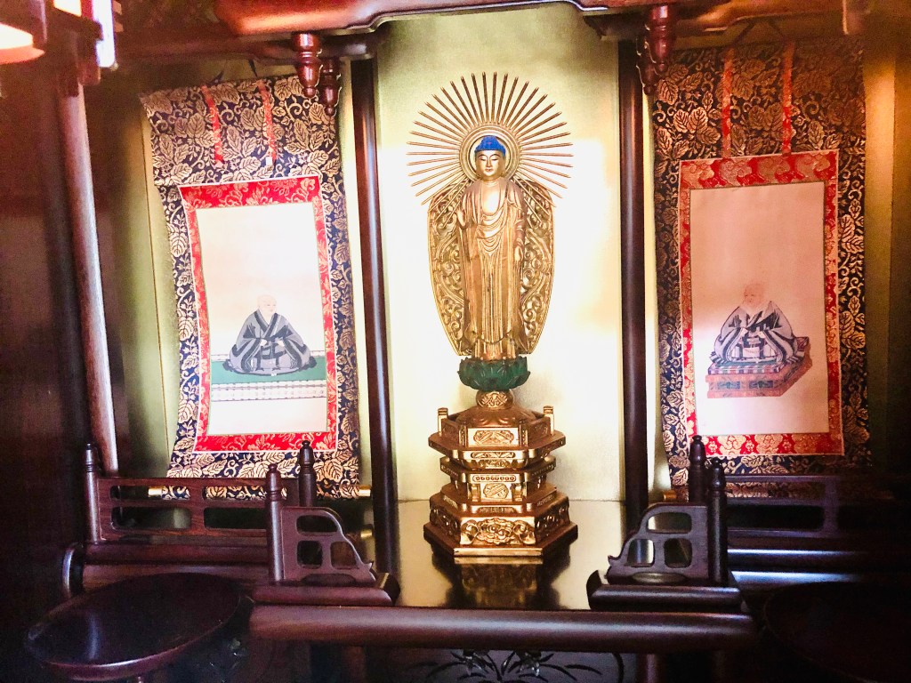 仏壇をしまわれたご門徒さんより寄贈された御本尊(阿弥陀さん)と脇掛を、この度、仏壇を購入されたご門徒さんのところにお届けしたというわけです。