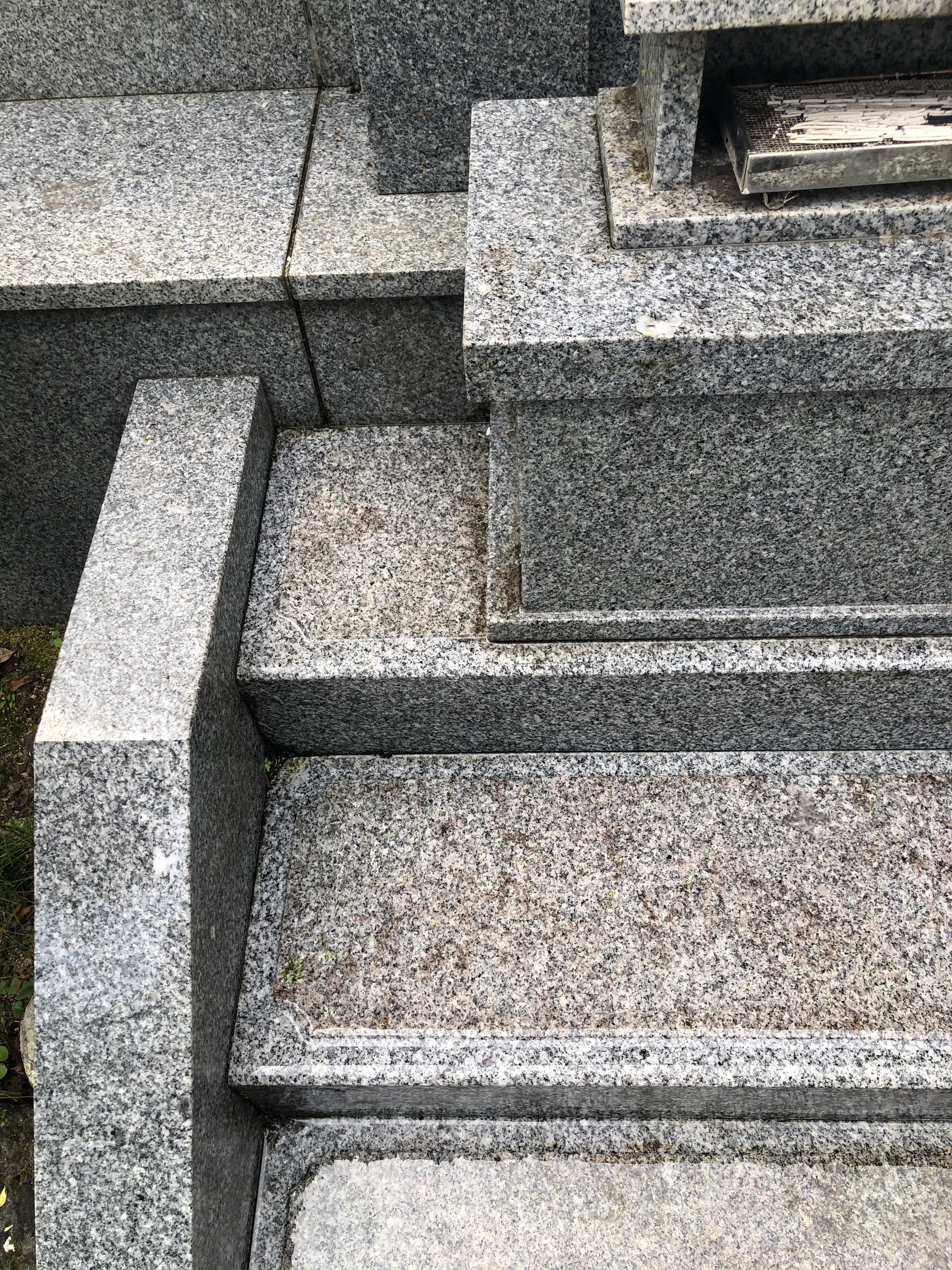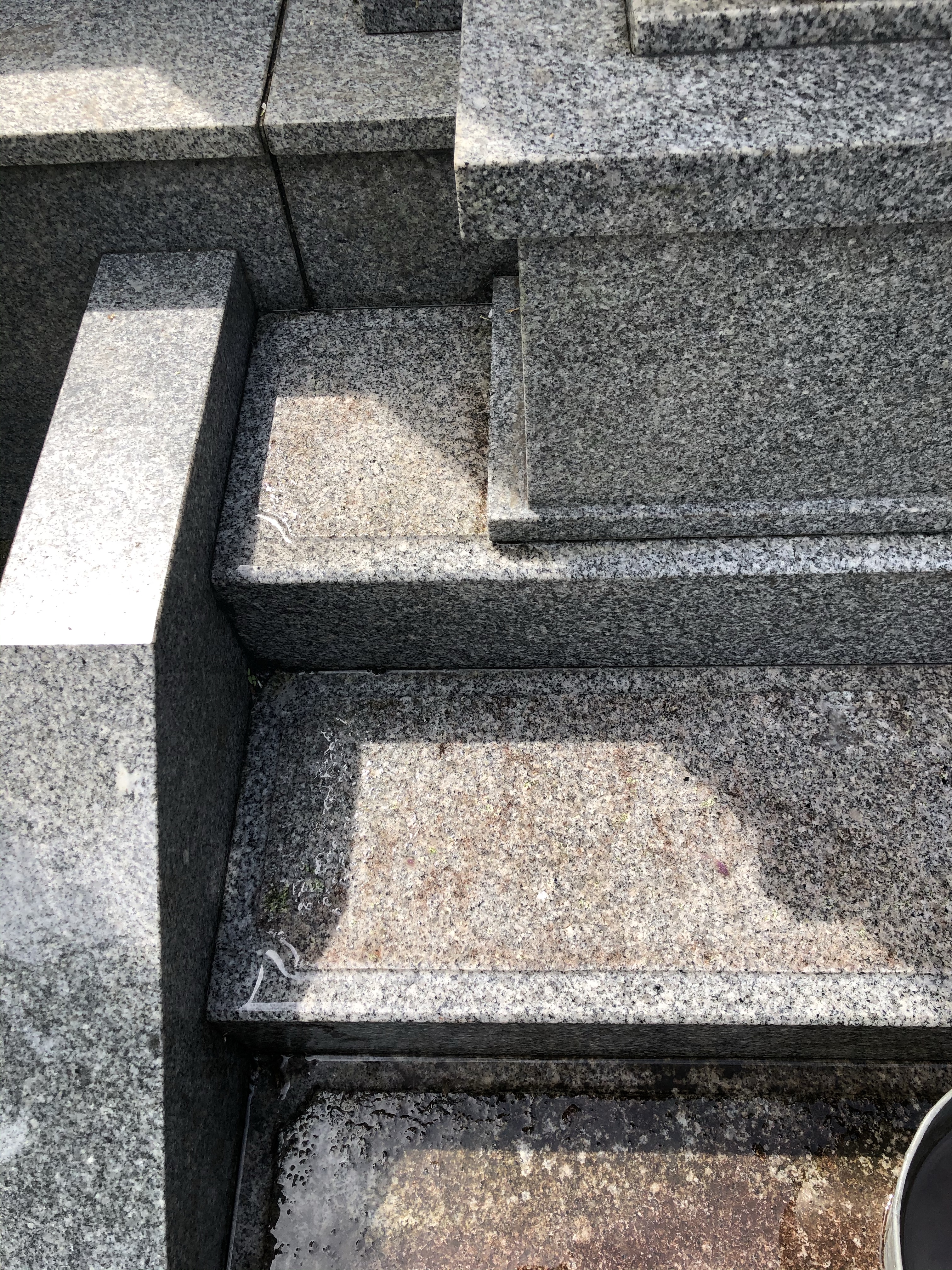 墓石に上がる階段の石についた赤錆をどうにかしないと!