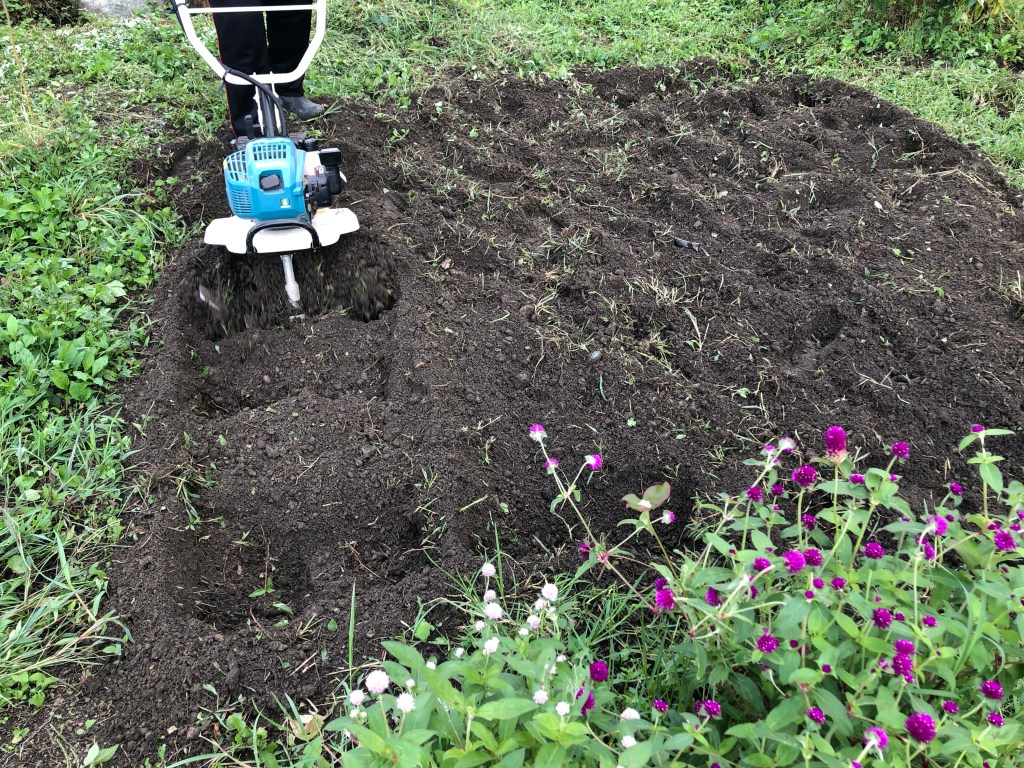 イノシシさんに里芋を食べられて以降、手をつけていなかった畑を耕し、花の種、球根を植えました。
