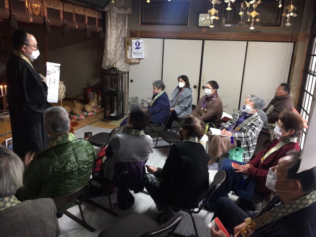 除夜の鐘にはじまり昨日、そしてきょうの修正会で年頭の行事が終わりました。あわせて約50人ほどの参加でした。換気や消毒などにも気をつけつつ、それぞれ短時間でしたが無事に開催できてホッとしています。
