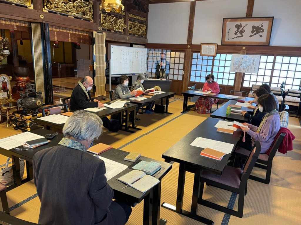 お寺で勉強会をしました。年間5回の予定で今日が初回です。住職含め10人の参加でした。