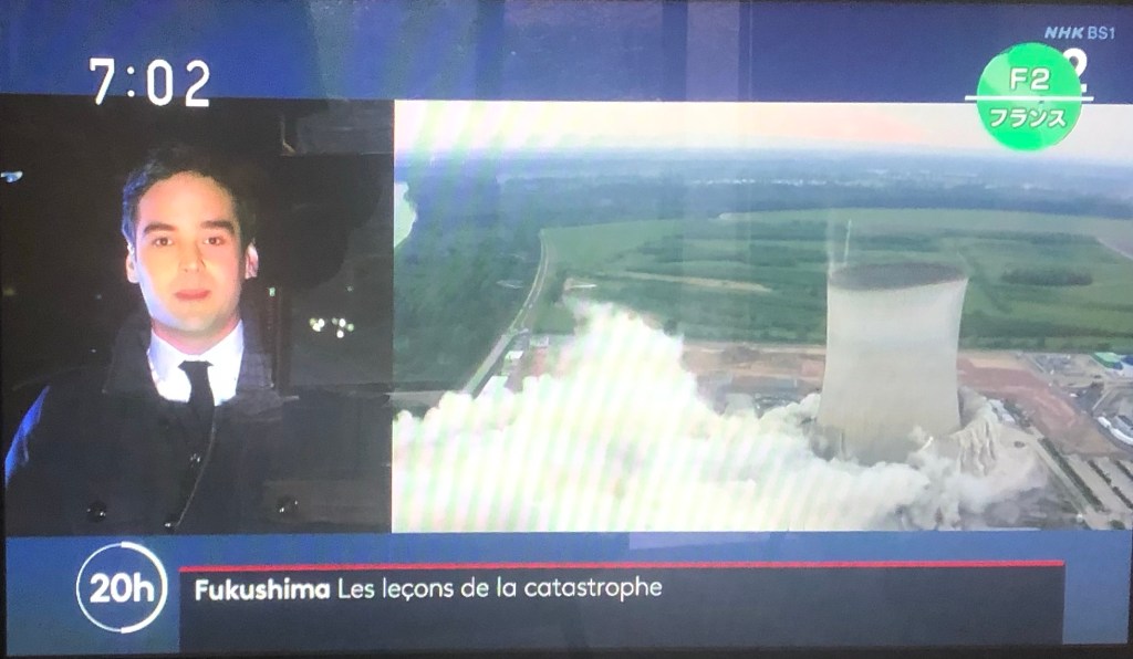 朝、毎日みているNHK BS1のワールドニュース。France2は、震災と原発事故を報じていました。被災者の声、そしてドイツが来年で原発から完全に撤退しようとしていることを報じていました。ドイツ・メルケル首相は原発推進派でしたが、フクシマを受けて原発からの撤退を表明たのです。