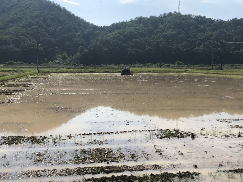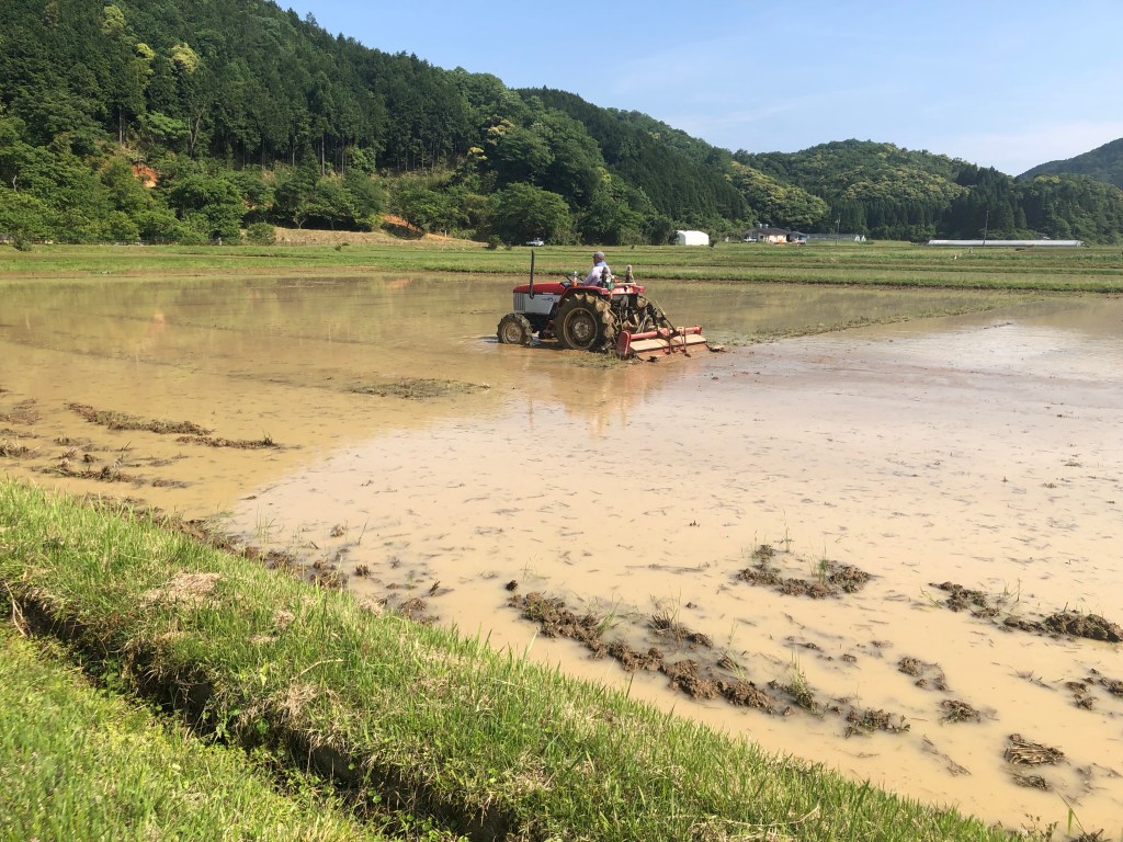 昨日、農家のYさんのところへ玄米を買いに行きました。いま田植えのシーズンです。Yさんはトラクターで田んぼをならしていました。2日ほどおいて田植えをするそうです。「なかなかえらい(疲れる)仕事ですで」とYさん。