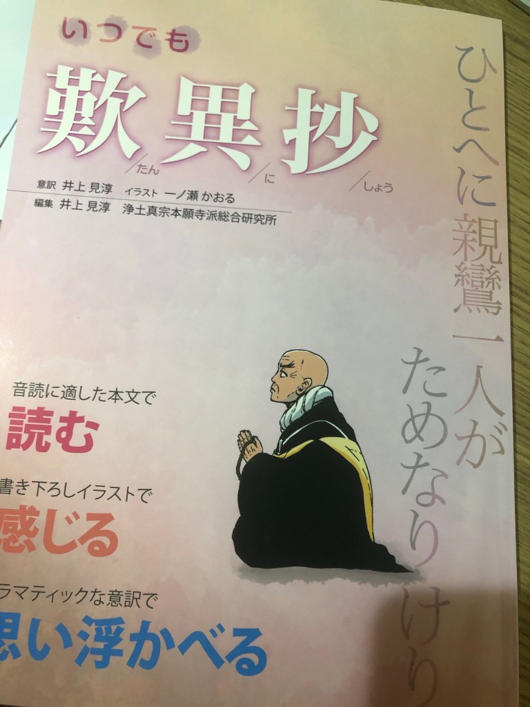 「『歎異抄』を読みたい」という方がいらっしゃればすすめようと思います。1冊770円で手ごろでもありますし。本堂にも何冊か置きますので、お参りの方、ぜひ手にとってみてください。