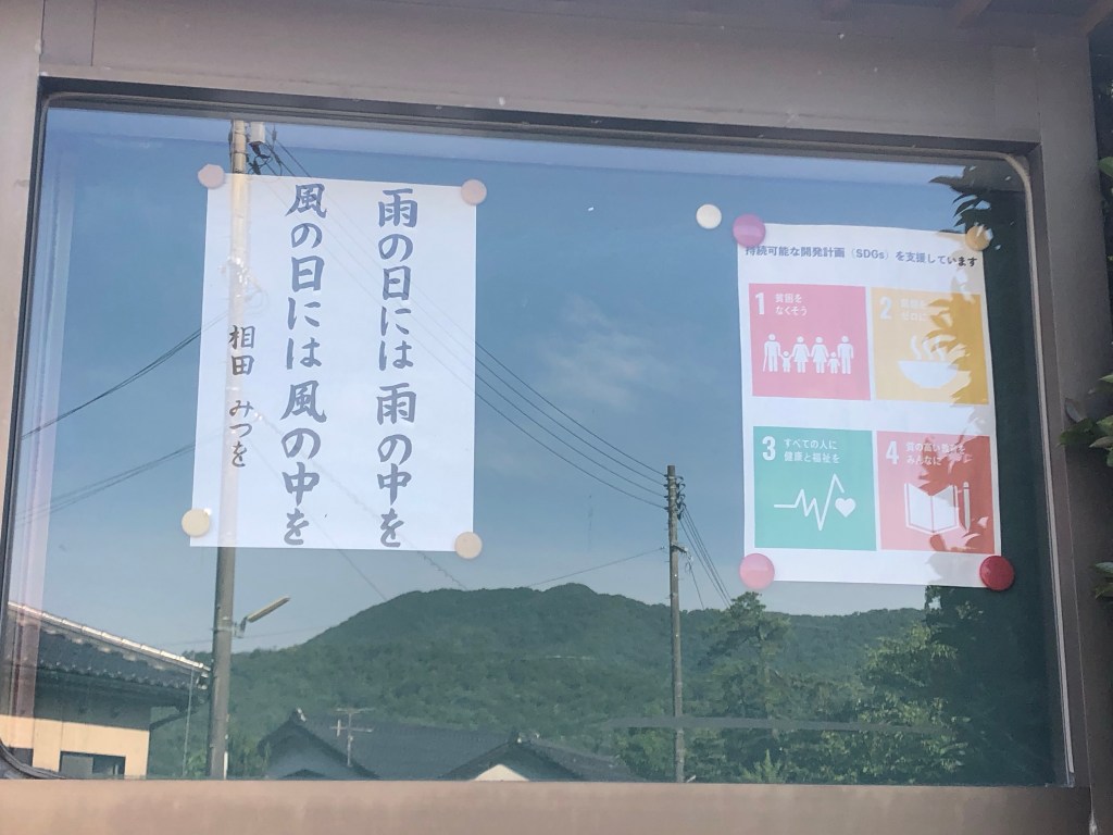 相田みつをさんは、雨や風について、人間の悩みや迷いのことといわれています。確かに、人生は晴れの日ばかりではありません。雨や風が吹く現実をあるがままに受け止めつつ歩んでいきましょうということになるのでしょうか。なかなか難しいことではありますが、イライラしたり、不安になったりしたときに、自らにいい聞かせてみることで、前を向く力になる言葉だと思います。