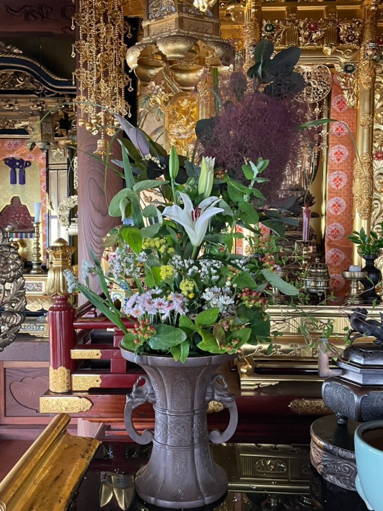 それはさておき、今朝は本堂のお花を換えて出発せねばと、いつものお店で調達しようとしたのですが、あるはずの大きな菊が置いてありません。