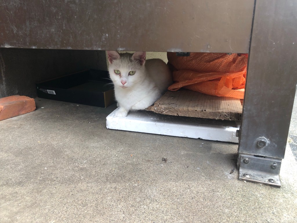 お勤め帰りに久しぶりにナモのふるさと、ネコの泉にいってみると、白いネコが。