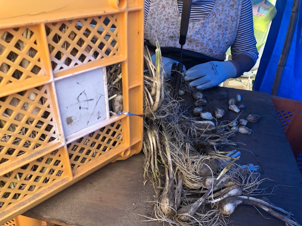 法事の間は道場の草刈りです。その合間に、らっきょうきりに精を出す地域の方に話しかけたり、ご門徒さんのところにうかがって近況を聞いたりと網代を歩いた土曜日でした。