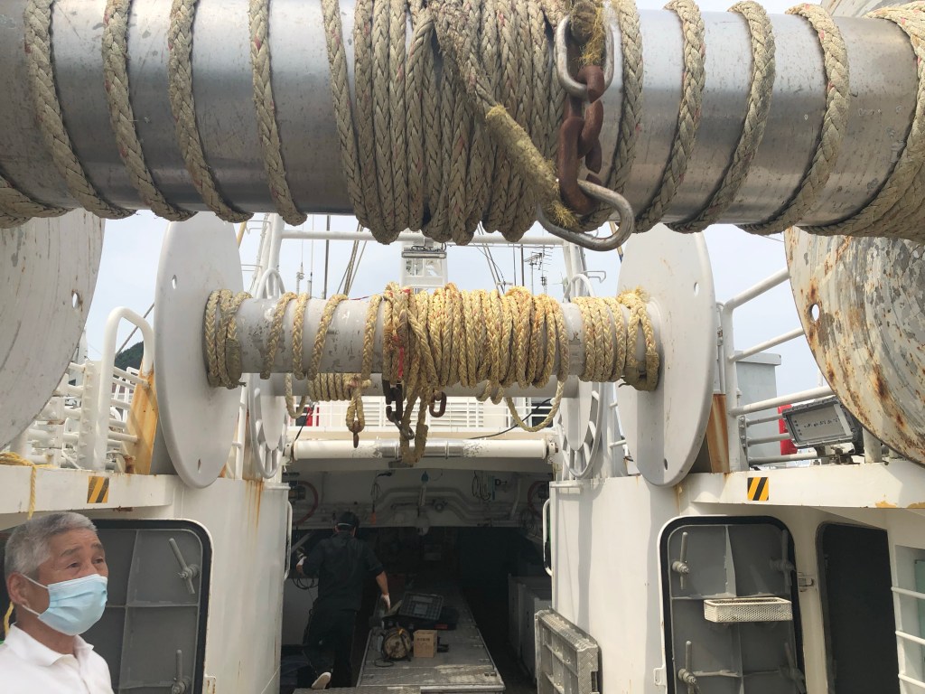 ロープを巻き取るウィンチ。ロープの長さは約1900メートルにもなるそうです。