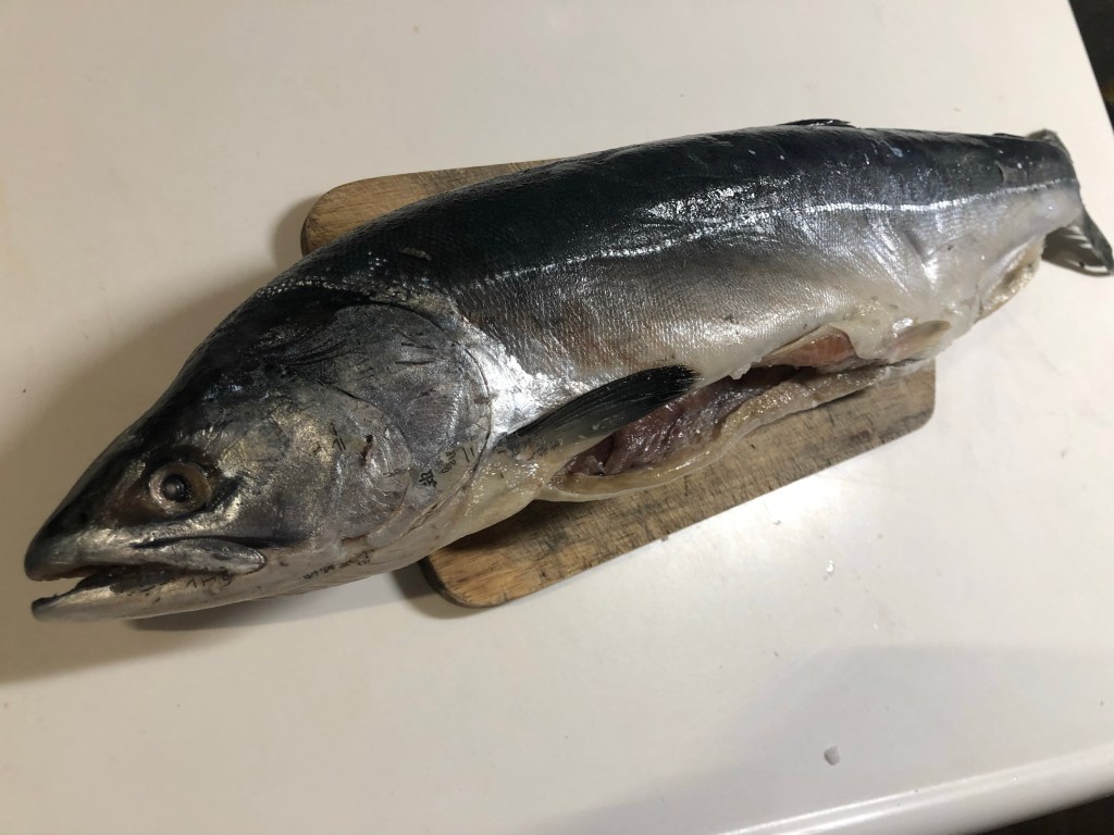網代では行商歴50年をこえるご門徒さんから塩マスをいただきました。「薄く切って食べて」とのこと。ありがたくいただきます。
