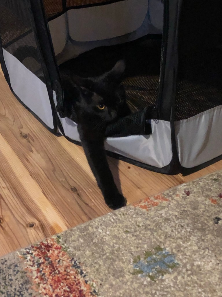 檻に入れておくのは寒いかなと思って飼い猫のタリを部屋の中にだしておいたのですが、昼に帰ってみると、エサの入ったプラケースの引き出しを開けてペースト状のえさ(ちゅ〜る)を何個も噛んで放り散らしていました。引き出しが開かないように重しをしていたのですが、力をつけてきたタリには昼飯前の仕事だったのでしょう。