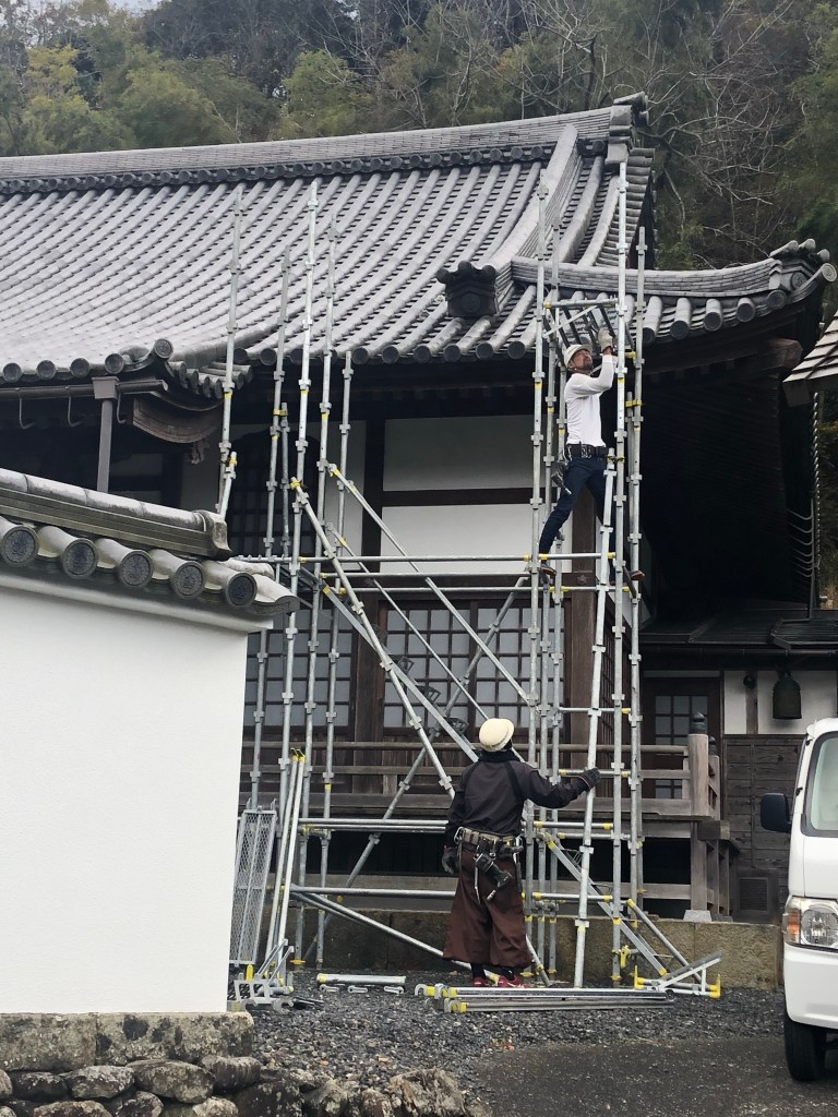 屋根瓦の修繕が終わり、きょうは足場専門の業者さんが朝から足場の解体をされました。