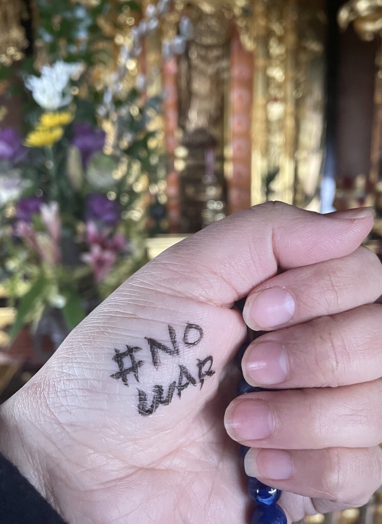 先週は住職がお寺の掲示板を「殺すなかれ 戦争反対」に急きょ書き換えたことや、両国大使館にメッセージをしたという報告もしていましたが、ウクライナの人たちのことを考えると、何をしていても重い気持ちにおおわれています。
