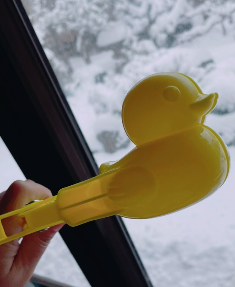 午後をまわっても雪はいよいよ勢いを増しています。窓辺で呆然としていたら、信州の先輩が送ってくれた雪ダルマ製造器のことを思い出しました。