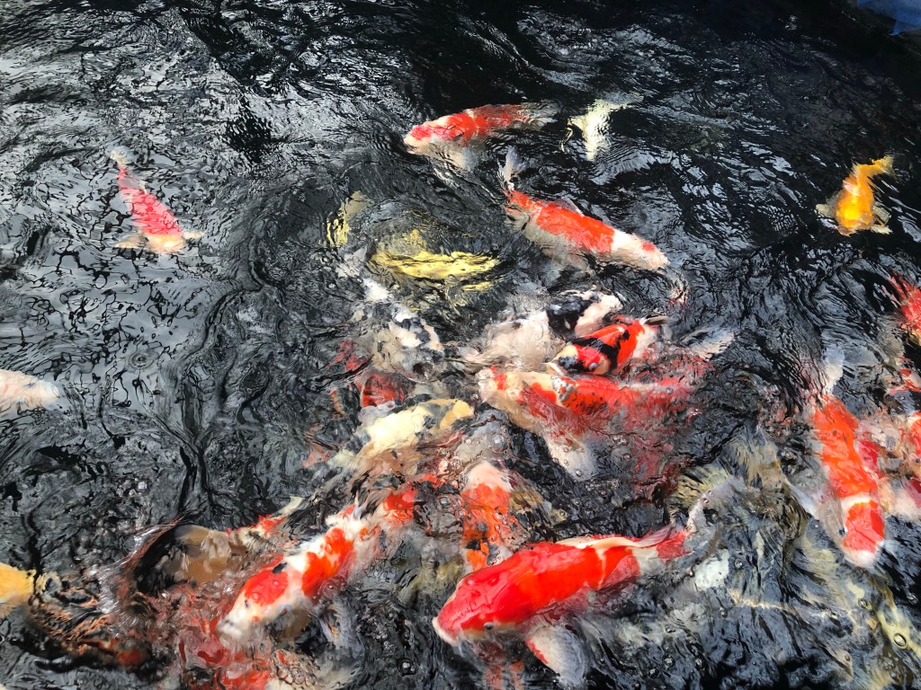 今月の11日に京都への日帰りの旅でお世話になったご門徒さん宅に朝、お礼にうかがいました。庭の池のニシキゴイが見事です。亡きお父さんが趣味で始められ、それを引き継がれたそう。10歳をこえるコイはビッグサイズです。