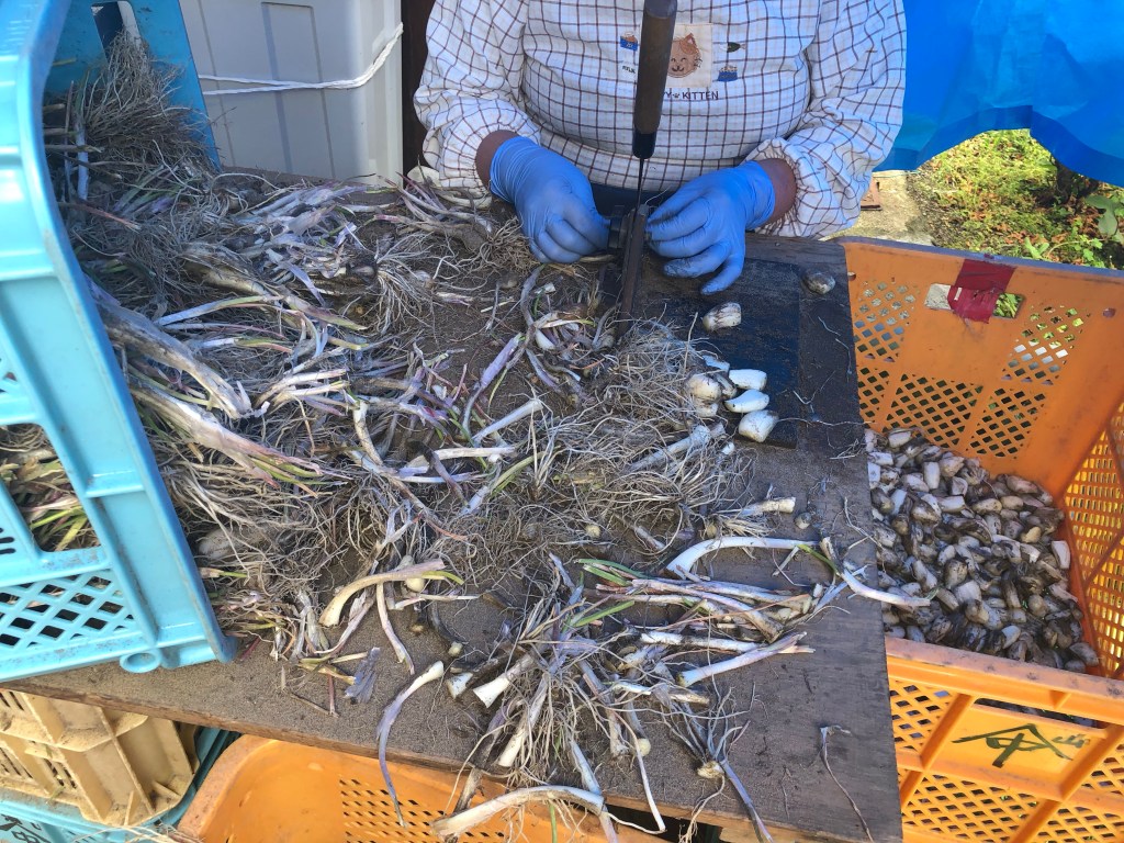そして今はらっきょうのシーズン。網代では何人かの方がらっきょう切りをされています。鳥取砂丘はらっきょうの産地としても有名です。