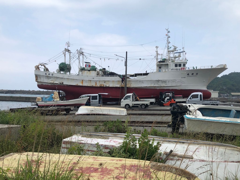 今シーズンの底曳漁は終了。メンテナンスのため陸揚げされている船もありました。