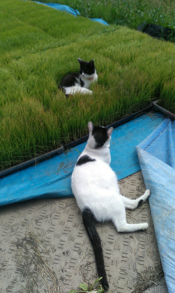 そして午後は銀行に支払いにいった足で岩常の米農家Yさんのところへ行ってコメを30キロ購入。破格の安さでいつも恐縮するばかり。ここには10匹ほどのネコがいます。家の外はたんぼとあぜ道です。ひなたぼっこしたり、いたずらをしたりと、のびのびと暮らしているのです。