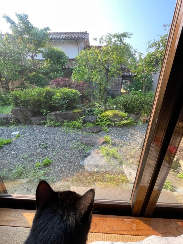 朝日が昇れば前庭にいて、朝ごはんを済ませば、中庭までトコトコ歩いて日陰で昼寝。