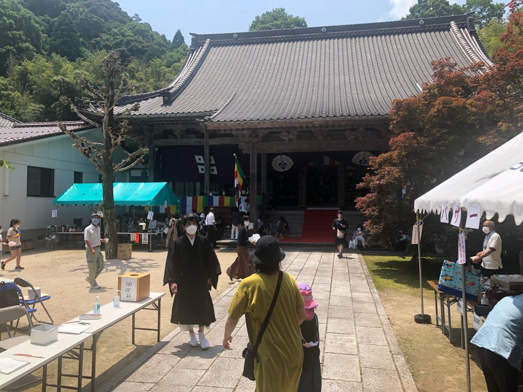 平成29年から準備をはじめ、今日と明日の法要を迎えられたそうです。100人のご門徒さんがスタッフとして法要を支えておられます。模擬店もあり、おまつりのようです。老若男女が一堂に集っていますが、なかでも若いお父さんお母さんと小さな子どもたちがたくさん。