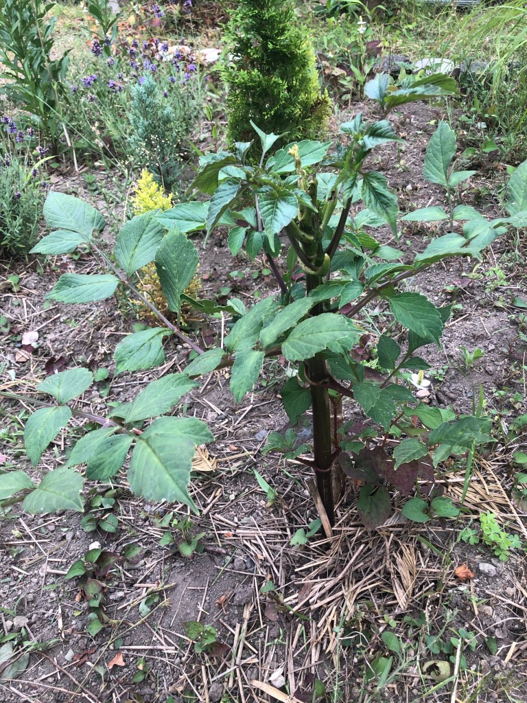 花壇の皇帝ダリアは順調に大きくなっていました。