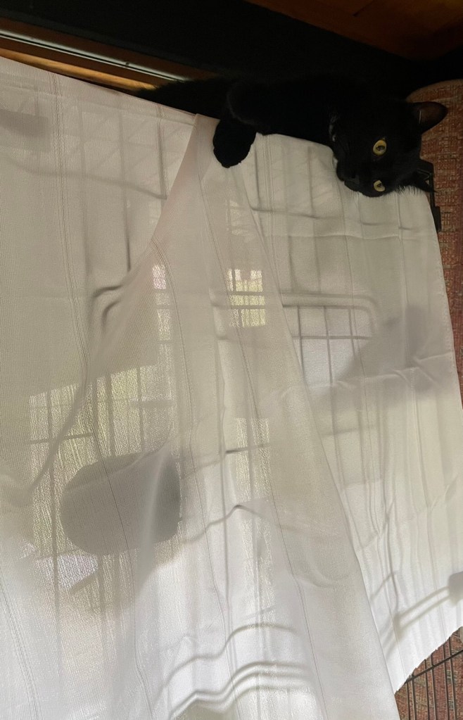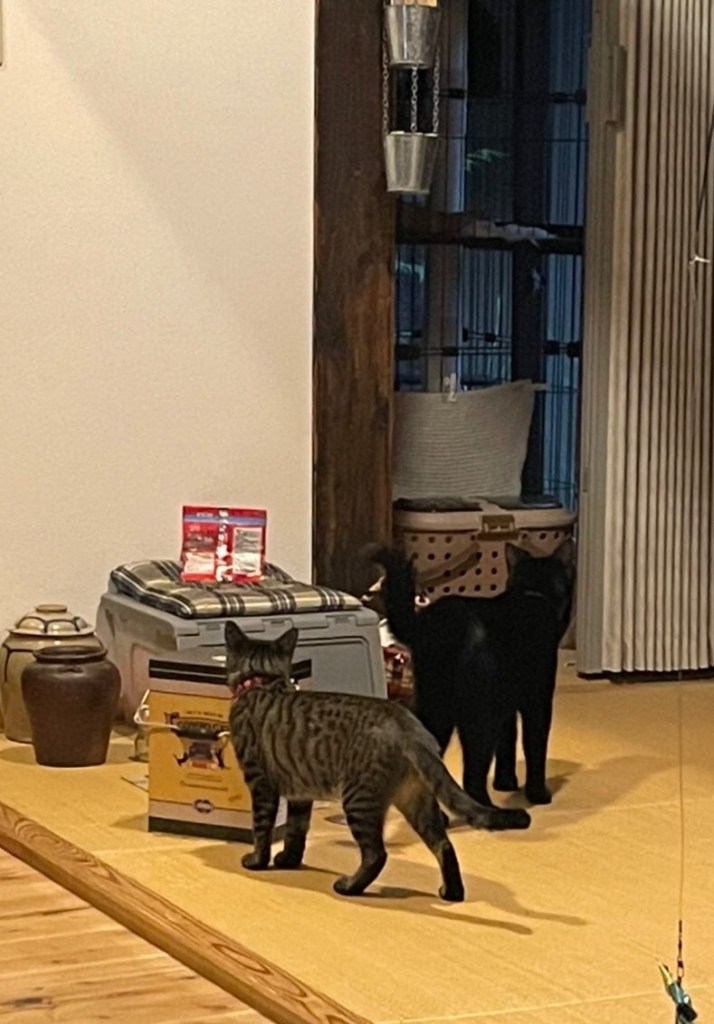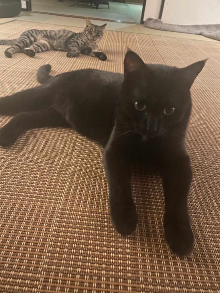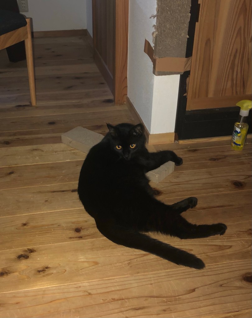 ぼくは、あちこちのことがきになるので、おへやとおへやのあいだに、からだをのばしてごろりんこしていることもおおいけど、おぶつまの、えんがわがしゅきです。