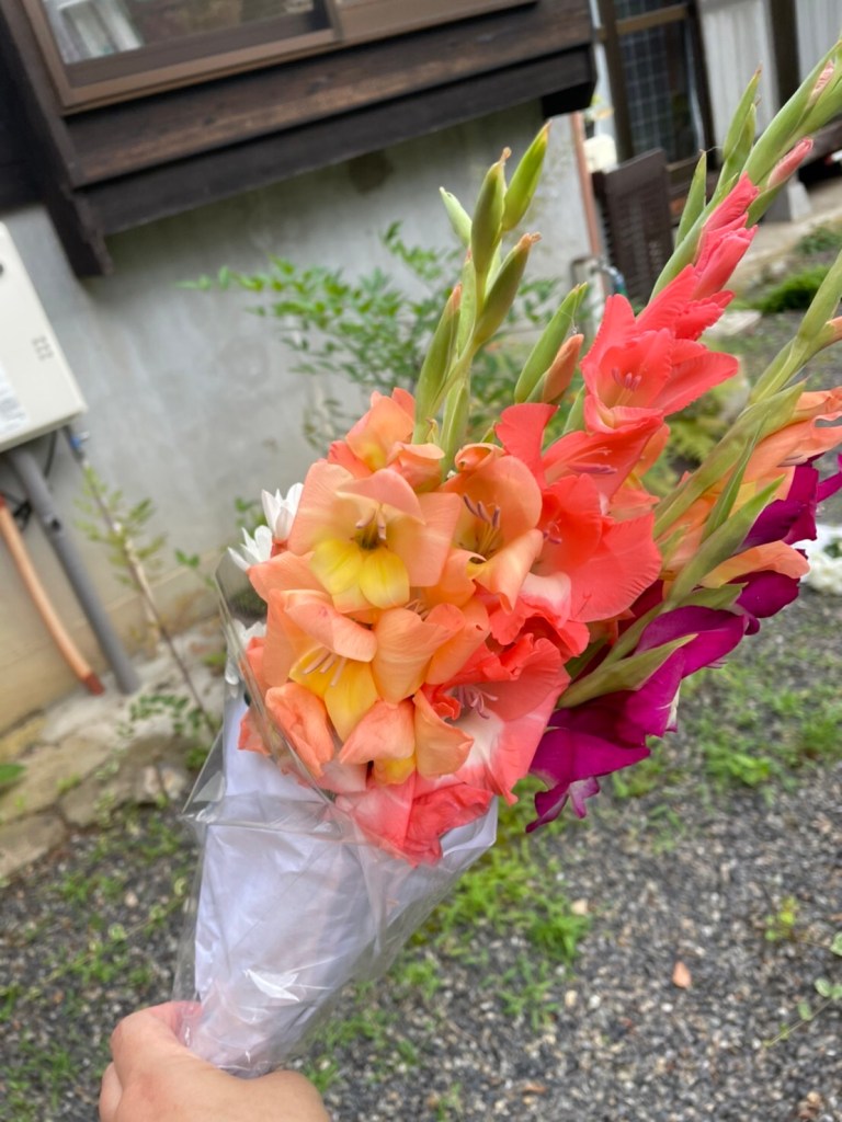 朝、坊守が、西法寺農園で咲いたグラジオラスを花束にしてくれました。