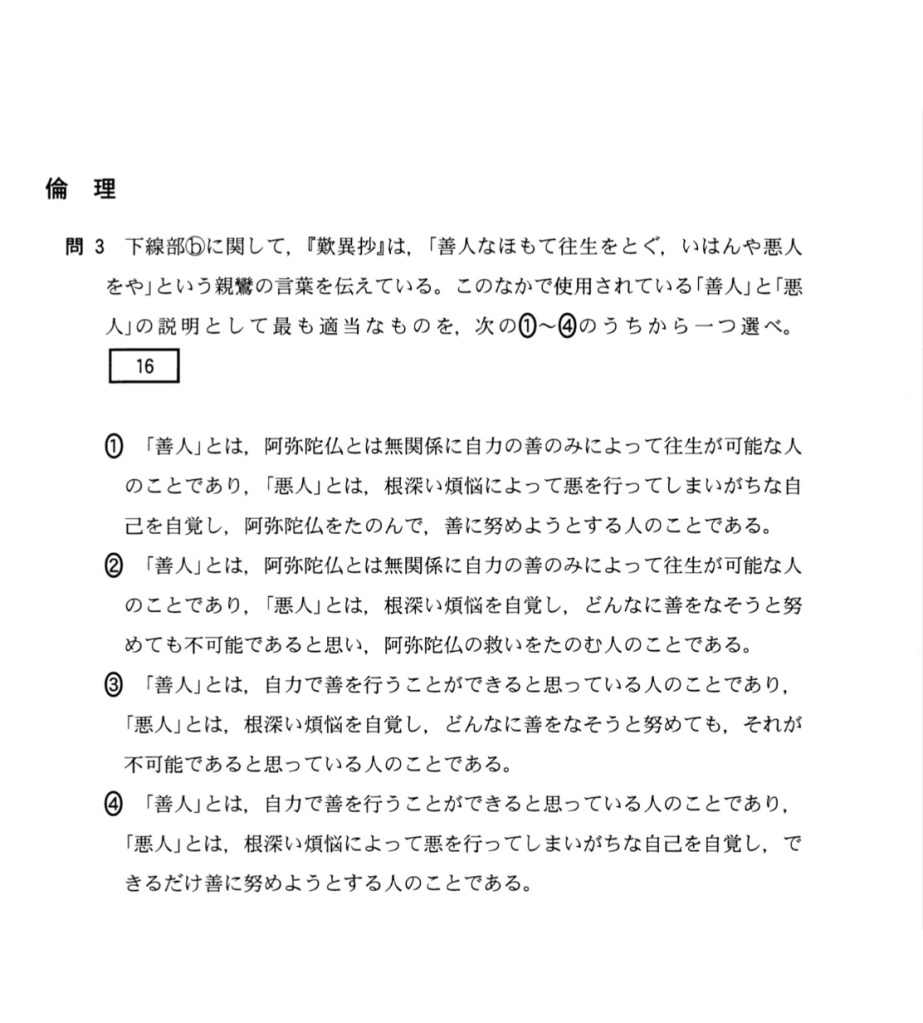 さて、みなさん。ここでクイズです。2011年度センター入試「倫理」の問題です。