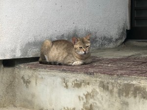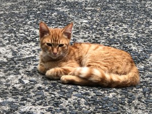 網代のご門徒さんのところにお盆懇志の受領書を届けてまわりました。先日、畑で実ったスイカをお供えしてくださったご門徒さんと道端で顔を合わせ、「スイカ、甘かったですよ」「当たりだったか」と立ち話に。この方は「ネコの泉」の主人でもあります。ナモのふるさとです。今日久しぶりに前を通ったら、5匹いました。