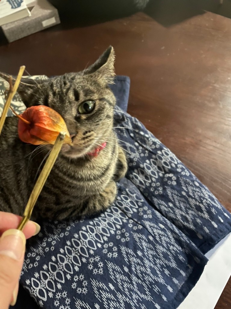 ゴミ箱を漁ったり、新入りのおんちゃんにちょっかいを出したり、悪い子ぶりは野良猫級なので、間違えて外に出た場合、ご近所さんにも飼い猫とは思っていただけない恐れがありそう…。