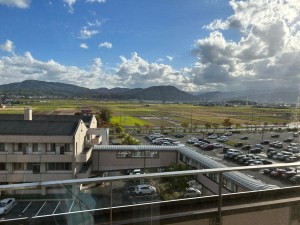 昨日の夜中、激しい雨が降り、何度か目が覚めました。今日は午後から晴れ間が広がっています。市立病院は鳥取市南部の的場というところにあります。病院は市街地の外れにあり、まわりには田んぼが広がっています。