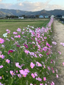 そして夕方、コスモスロードを少し散策してホームセンターでネコのご飯を買って帰ろうかなと思ったら、田後のご門徒さんも買い物帰りでしばし立ち話に。お寺の役員をつとめていただいているのですが、来年5月に予定している法要(親鸞聖人御誕生850年立教開宗800年の記念の法要です)に向けて声かけをはじめられたそうです。生前法名を授かる機会としても準備しています。「さっきスーパーで会ったMちゃんに、『いっしょにうけようで』と声かけただが」と。本当にありがたいことです。みなさんに支えられて、お寺も住職もあるのだなとあらためて感じさせられました。