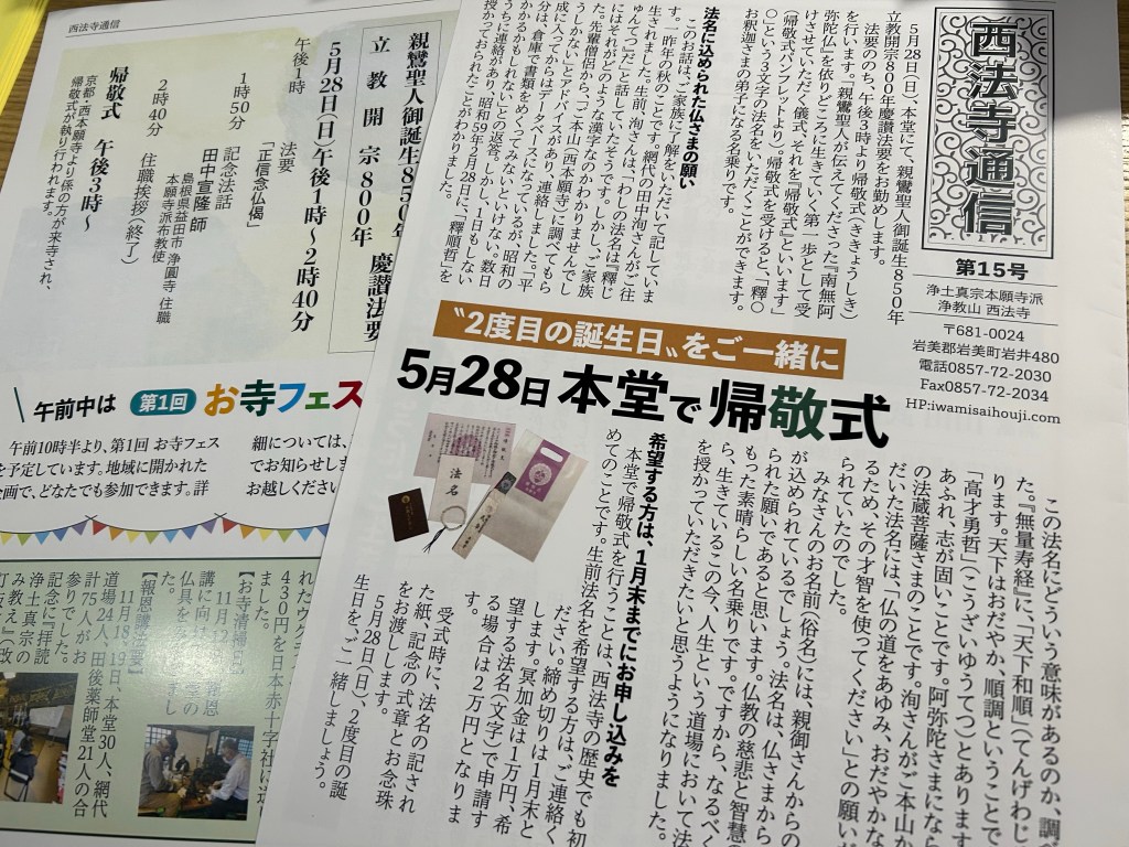 寺報(西法寺通信)の第15号が完成し、今日は早朝から発送作業です。夕方までかかって160通ほど封筒に詰めました。あした運送業者さんに引き取りにきていただぎす。