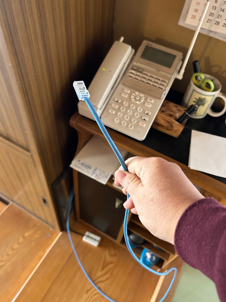 LANケーブルを壁の中に通すなどして、玄関を入ったところに出口をつくってもらいました。Wi-Fi無線ルーターを設置すれば1階でも快適なネット環境になるはずです。明日にでも市内の電器店に行ってきます。