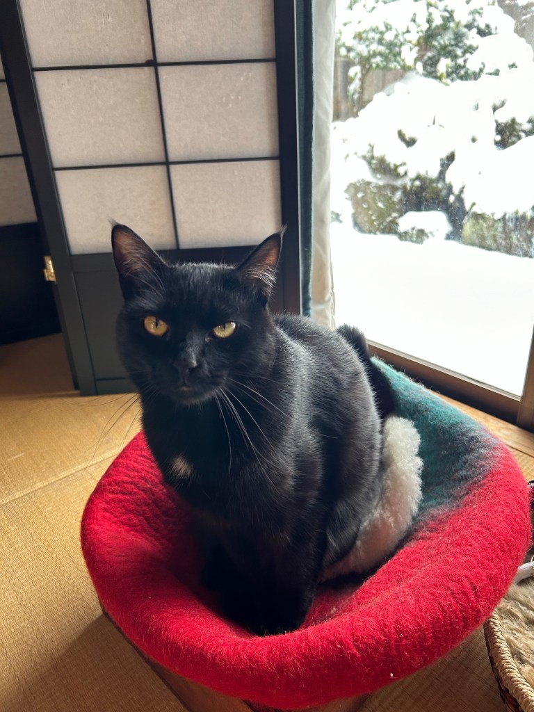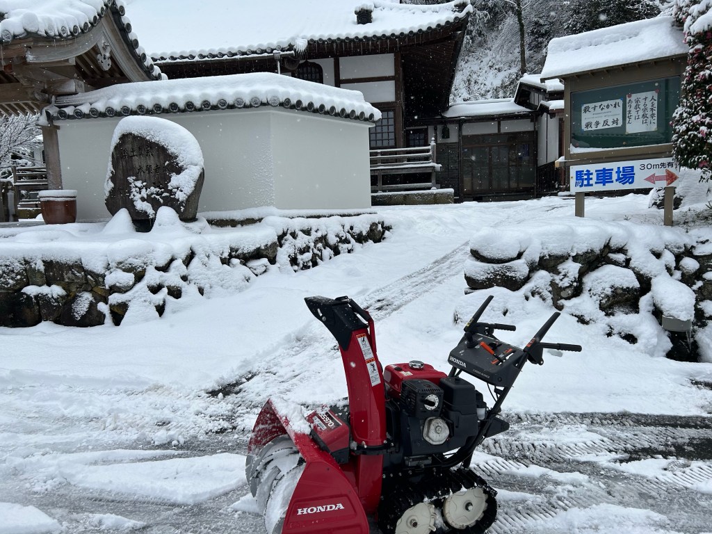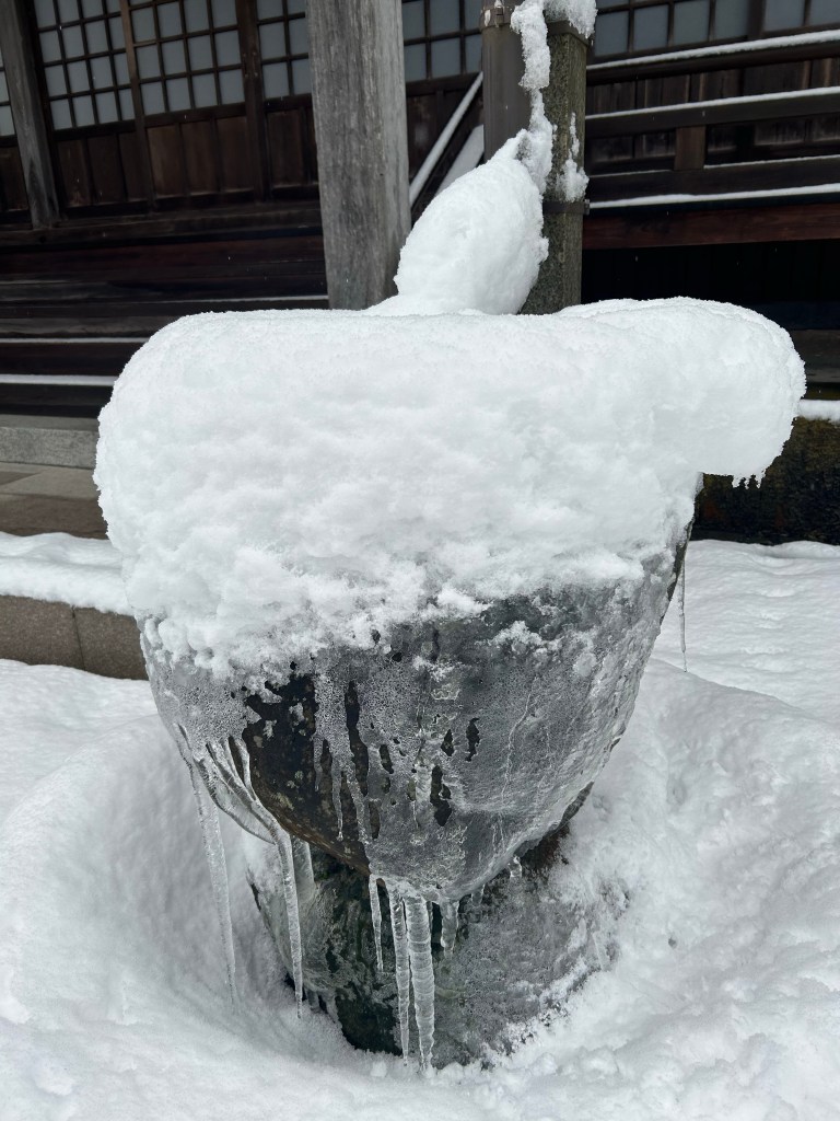 今日は朝、蛇口からお湯をくみ、道に流すことからスタート。お寺の玄関に通じる坂道が凍りつき、滑りそうだったのです。何回も給湯器と道を往復し、滑らない程度にはなりました。雪も怖いですが、この凍りついた道が厄介なのです。