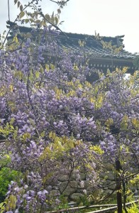 桜は早々に散ってしまい、いま境内では藤が満開です。