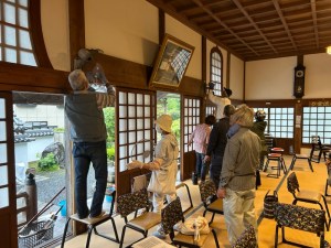 お勤めが終わった住職も合流して、夕食後の食卓は、テレビも音楽も無しの静かな読書の時間です(住職が開いているのは、自由律俳句の尾崎放哉について又吉さんと金子兜太さんが書いたもの)。住職は放哉が好きなのです。