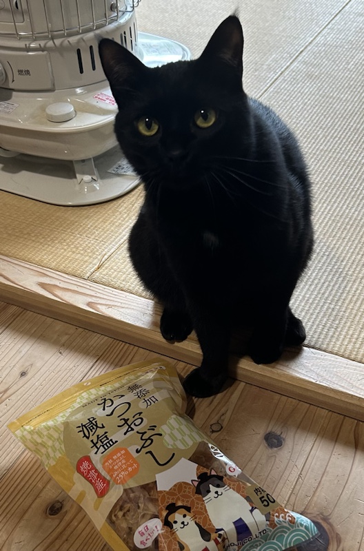 静岡のお土産に焼津の猫ちゃん用かつおぶしをいただきました。無添加かつおぶし・減塩・焼津産と魅力的な言葉がパッケージに記してあります。富士山のイラスト、そして「毎日食べたい」。たしかに、ナモはかつおぶしを求めて、今も連日、声をあげているくらいですから。ター坊は、どこにいても、かつおぶしの袋を開ける音を聞くと、猛スピードで駆けてきます。2匹にかわってお礼申し上げます。