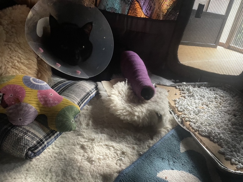 きょうはアタイがにっきのおとうばんです。たーちゃんのあんよがいたくなってから、おいたんもおばたんも、たーちゃんをいれたかばんをかかえて、なんどもびよいんにいっています。けがをしたとき、たーちゃんは、へんなこえでなきました。どうしたの?!とみにいったら、あるけなくなっていました。